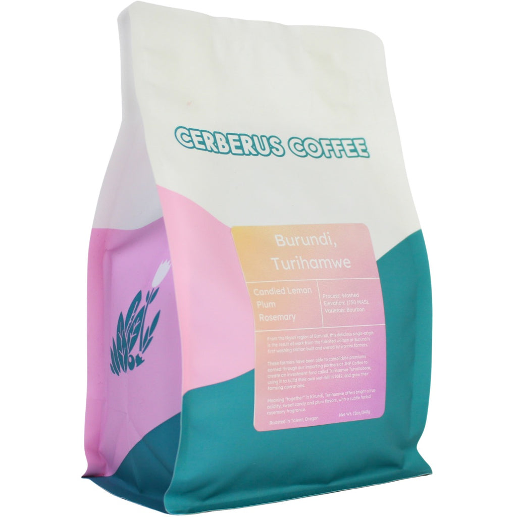 Meaning “together” in Kirundi, Turihamwe offers bright citrus acidity, sweet candy and plum flavors, with a subtle herbal rosemary fragrance.